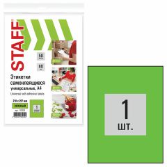 Изготовлены из самоклеящейся матовой бумаги плотностью 80 г/м2. Надежно приклеиваются к поверхности любой формы и материала. Картонная упаковка содержит 50 листов формата А4, на каждом листе – одна этикетка размером 210х297 мм.