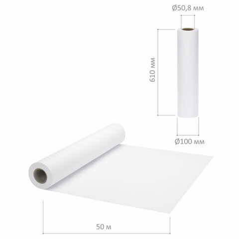 Бумага имеет оптимальную для печати плотность 80 г/м2, подходящую для большинства задач. Высокая степень белизны позволяет добиться более контрастного изображения при печати. Рулон имеет размер 610 мм, что соответствует формату А1+. Длина рулона - 50 м, внутренний диаметр втулки - 50,8 мм.