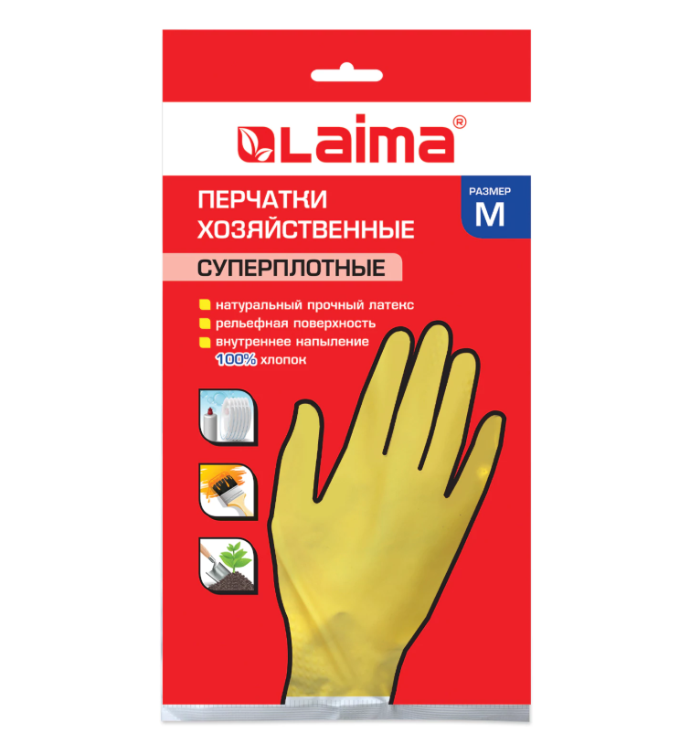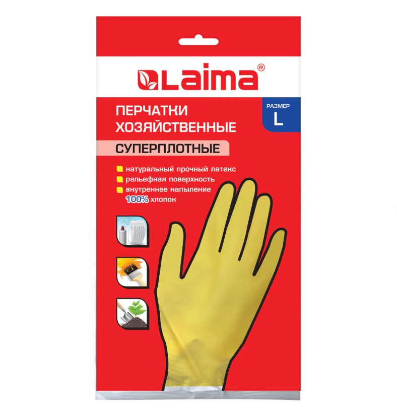 Перчатки МНОГОРАЗОВЫЕ латексные LAIMA "ПРЕМИУМ", хлопчатобумажное напыление, СВЕРХПЛОТНЫЕ, размер 8-