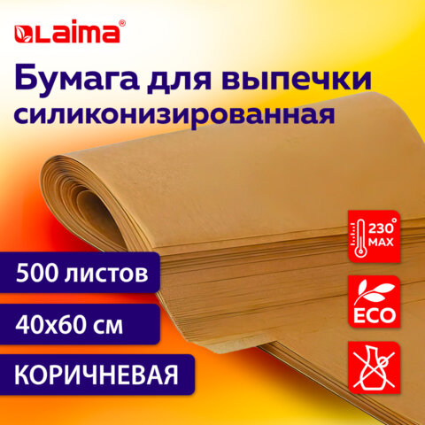 Бумага для выпечки силиконизированная в листах 40 см x 60 см КОМПЛЕКТ 500 штук, цвет коричневый, LAI