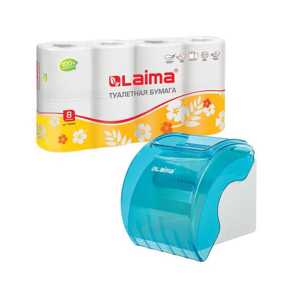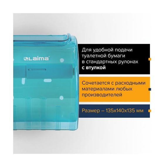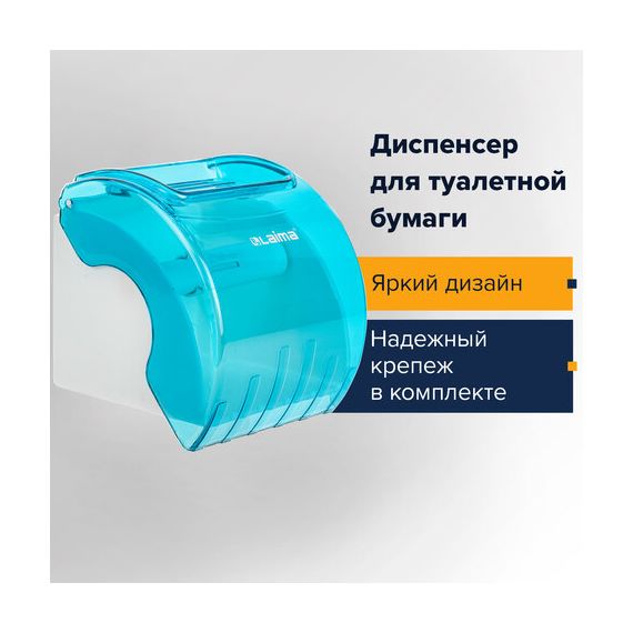 Диспенсер для бытовой туалетной бумаги LAIMA, тонированный голубой, 605043