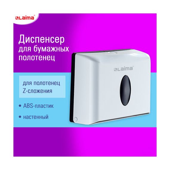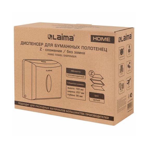 Диспенсер для полотенец бытовой LAIMA HOME (Система H2), Z-сложения, белый, ABS, 609108, M-5823B-W
