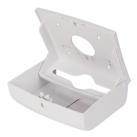 Антивандальный корпус изготовлен из ударопрочного ABS-пластика, позволяет использовать одну пачку полотенец interfold, Z- и W-сложения. Обеспечивает высокий уровень гигиены и комфортную подачу полотенец. Имеется окошко для контроля остатка полотенец. Сочетается с расходными материалами других производителей. Оборудован самозахлопывающимся замком с ключом. В комплект входят крепежные материалы для установки. Размер - 215х265х95 мм.