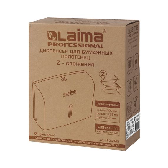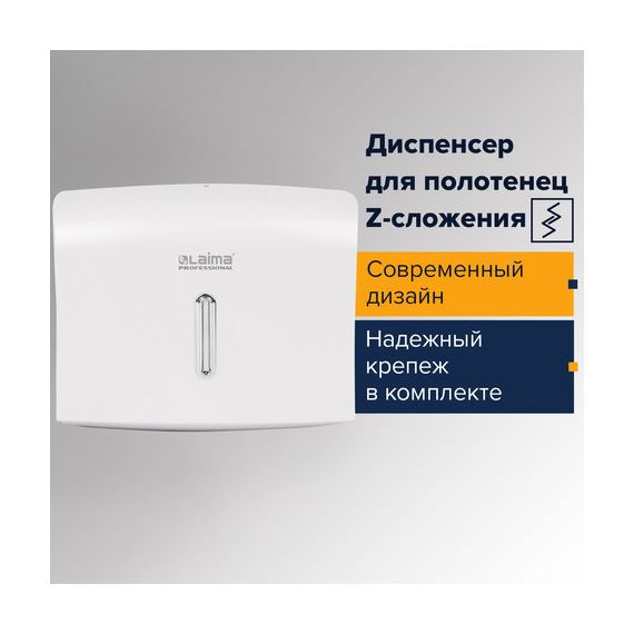 Диспенсер для полотенец LAIMA PROFESSIONAL BASIC (Система H2), Z-сложения, белый, ABS, 605049