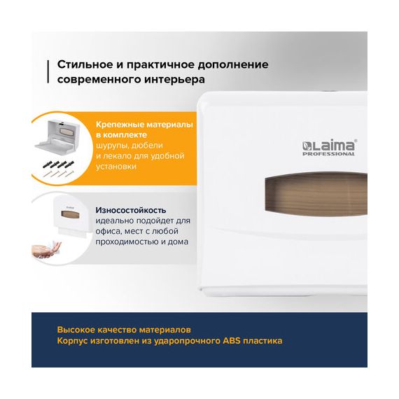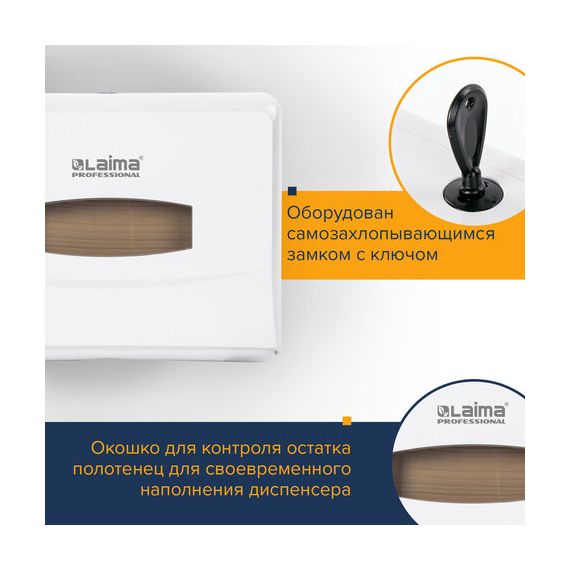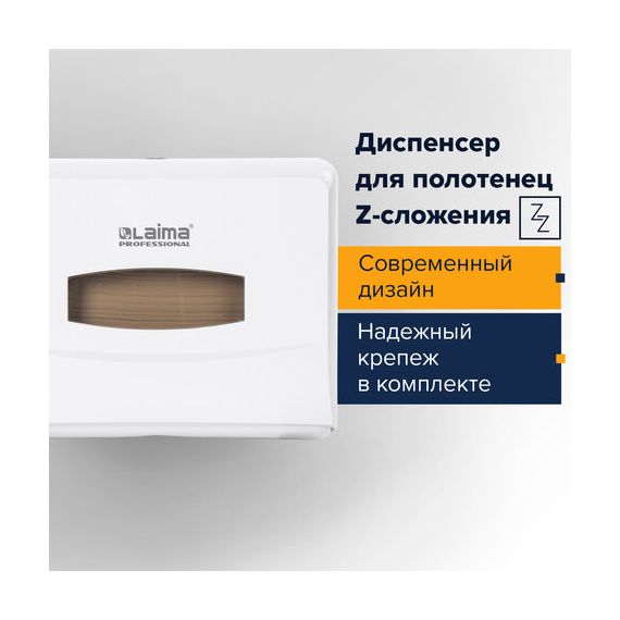Диспенсер для полотенец LAIMA PROFESSIONAL CLASSIC (Система H2), Z-сложения, белый, ABS, 606678