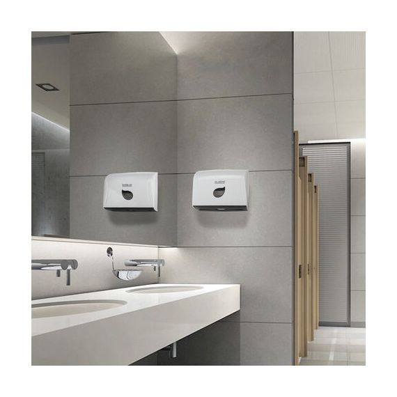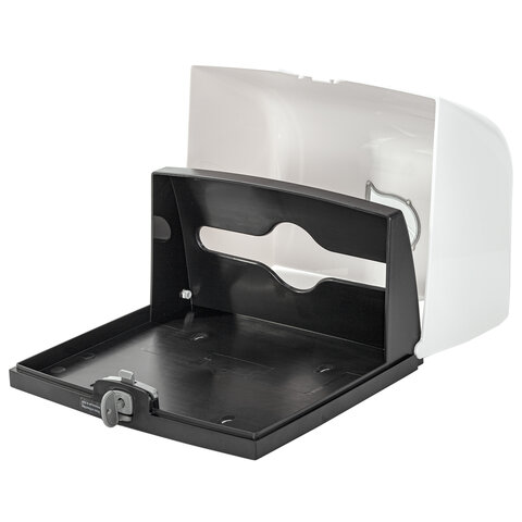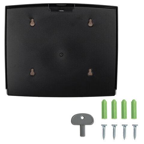 Антивандальный корпус изготовлен из ударопрочного ABS-пластика. Диспенсер обеспечивает высокий уровень гигиены и комфортную подачу полотенец. Имеется окошко для контроля остатка полотенец. Сочетается с расходными материалами других производителей. Оборудован самозахлопывающимся замком с ключом. В комплект входят крепежные материалы для установки.