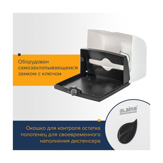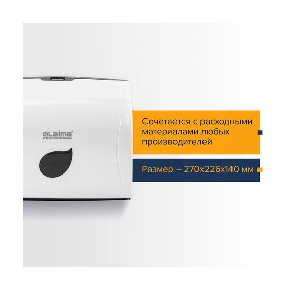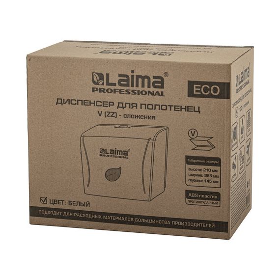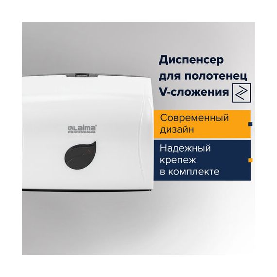Диспенсер для полотенец LAIMA PROFESSIONAL ECO (Система H3), V-сложения, белый, ABS-пластик, 606548