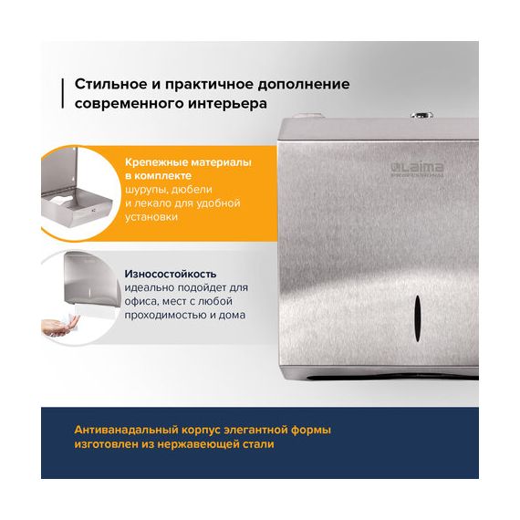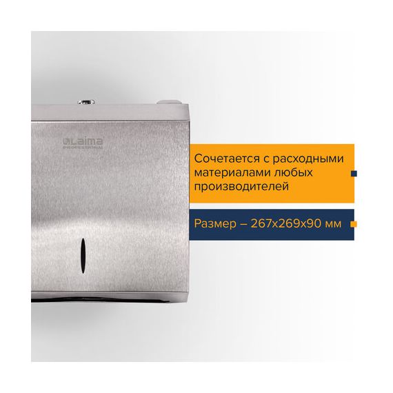 Диспенсер для полотенец LAIMA PROFESSIONAL INOX, (Система H2) Z-сложения, нержавеющая сталь, матовый, 605694