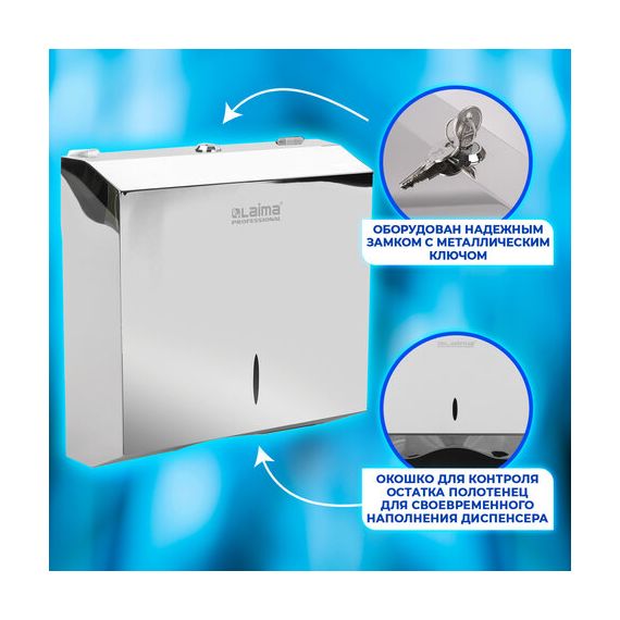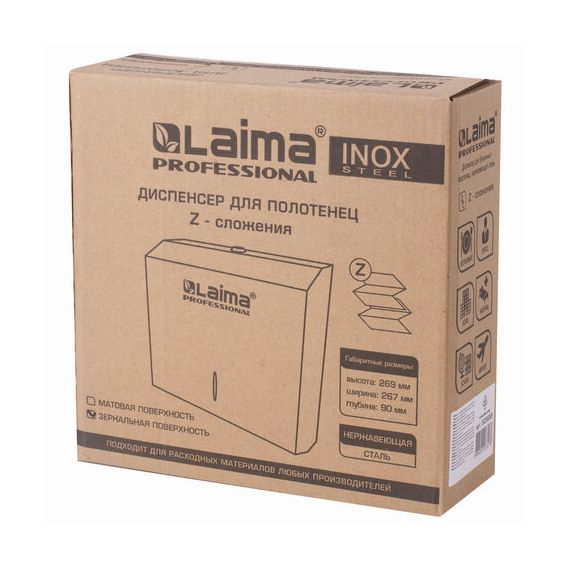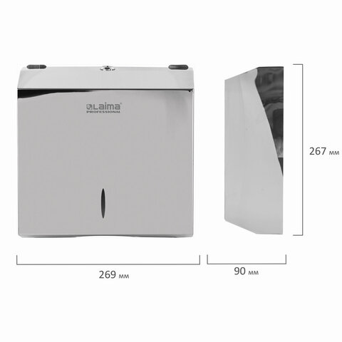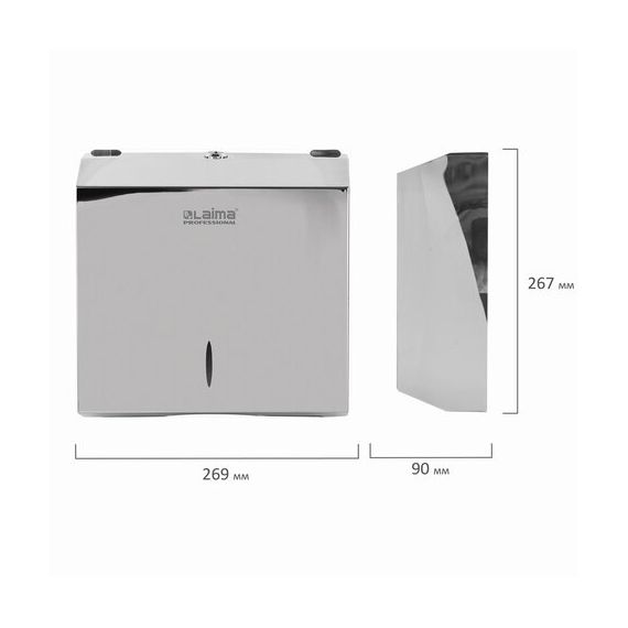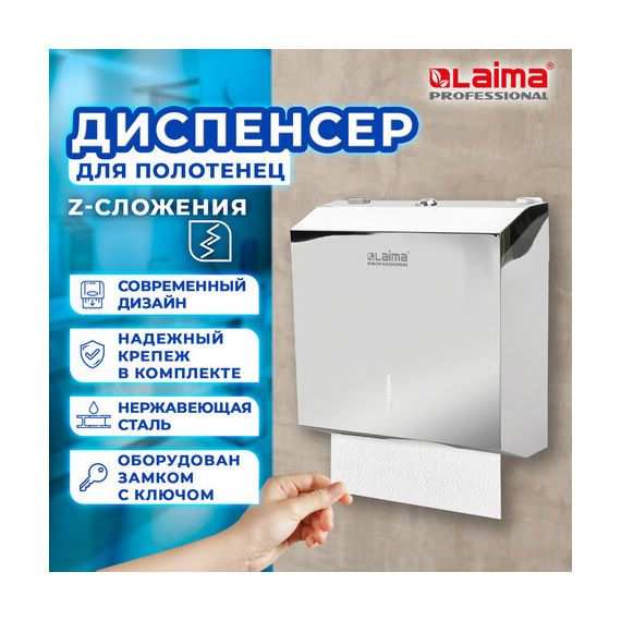 Диспенсер для полотенец LAIMA PROFESSIONAL INOX, (Система H2) Z-сложения, нержавеющая сталь, зеркальный, 605695