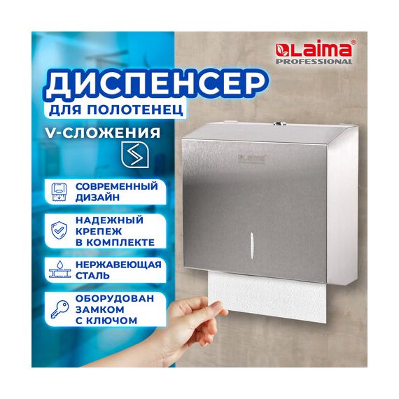 Диспенсер для полотенец LAIMA PROFESSIONAL INOX, (Система H3) V-сложения, нержавеющая сталь, матовый, 605696