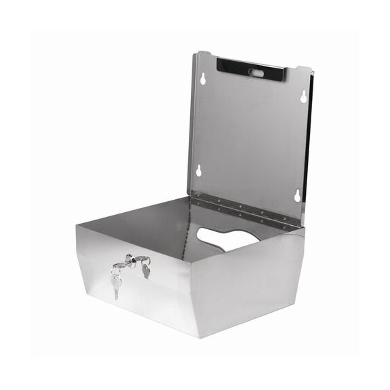 Диспенсер предназначен для подачи бумажных полотенец V - сложения. Имеется окошко для контроля остатка полотенец. Сочетается с расходными материалами других производителей. Оборудован замком с ключом. В комплект входят крепежные материалы для установки.