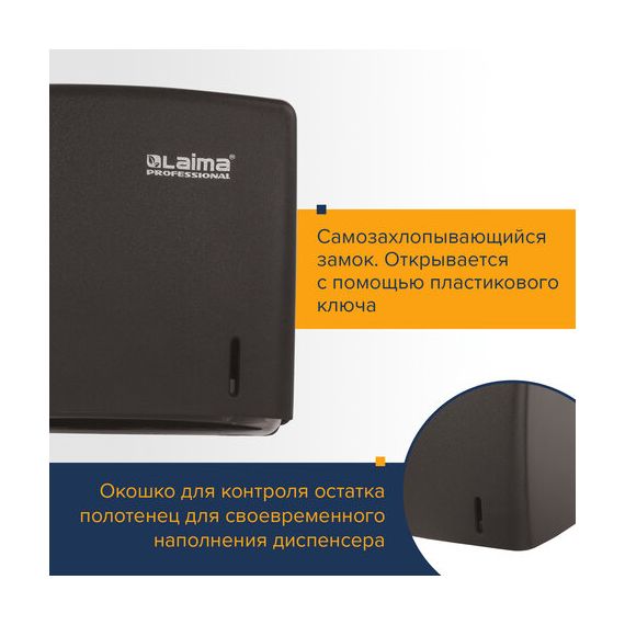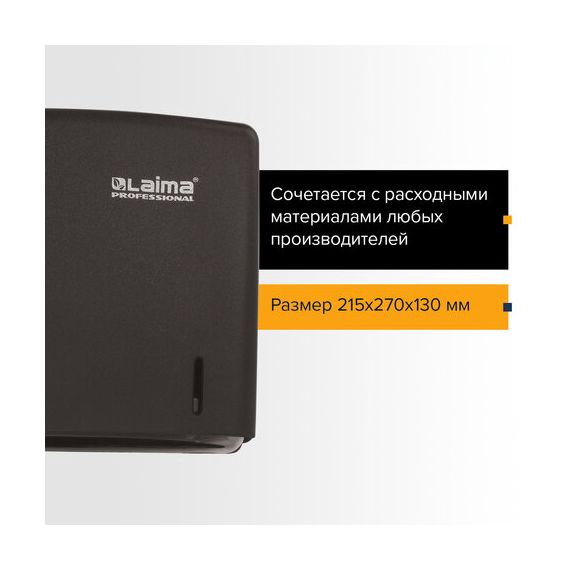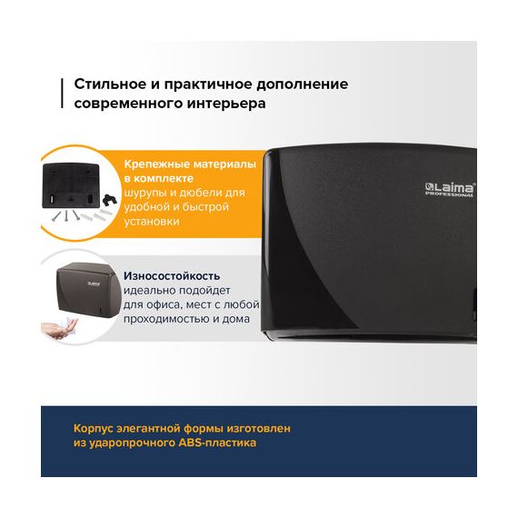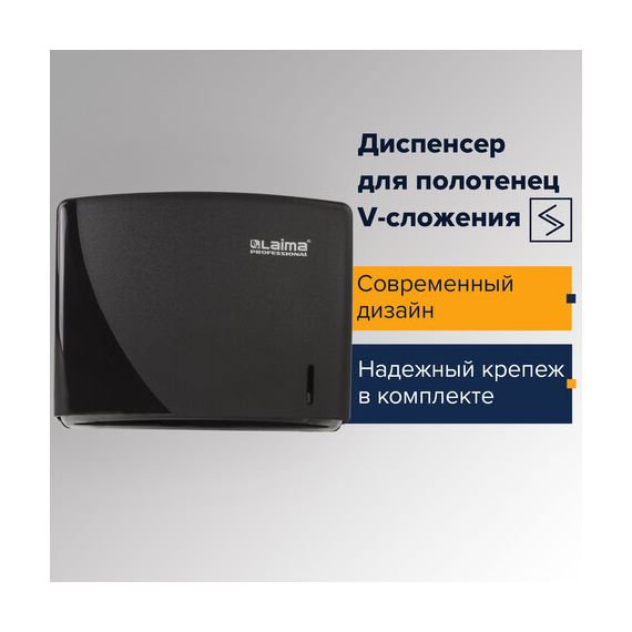 Диспенсер для полотенец LAIMA PROFESSIONAL ORIGINAL (Система H3), V-сложения, черный, ABS, 605762