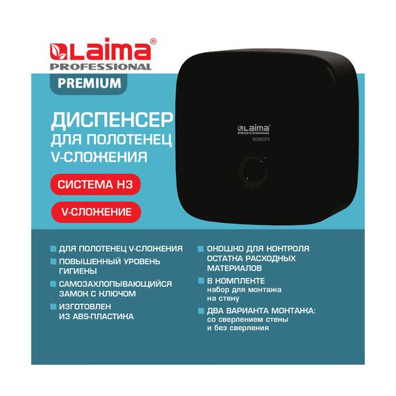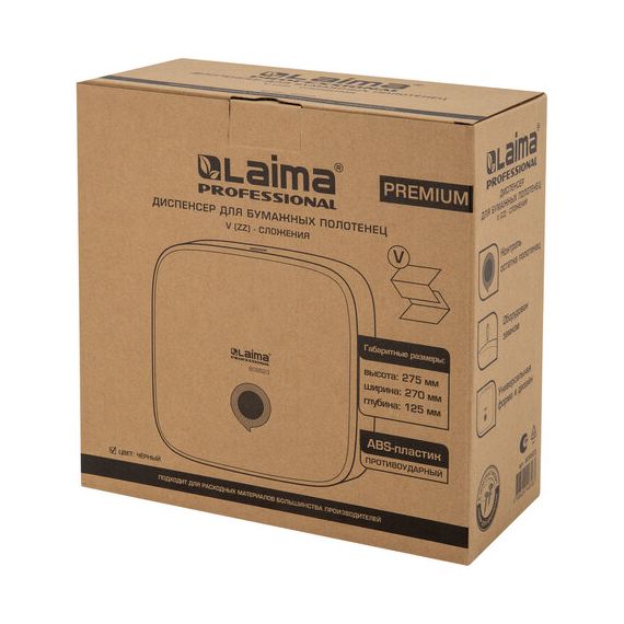 Диспенсер для полотенец LAIMA PROFESSIONAL PREMIUM BLACK (Система H3), V-сложения, черный, ABS-пластик, 609523