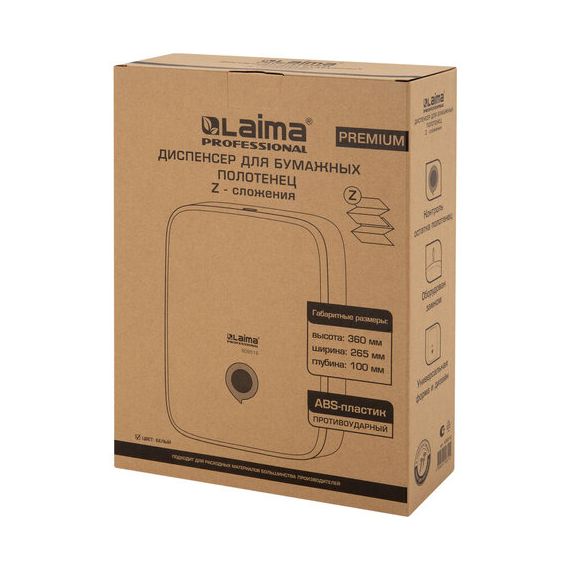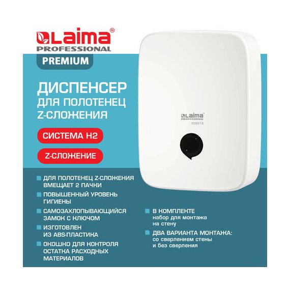 Диспенсер для полотенец на 2 пачки LAIMA PROFESSIONAL PREMIUM (Система H2), Z-сложения, белый, ABS-пластик, 609516