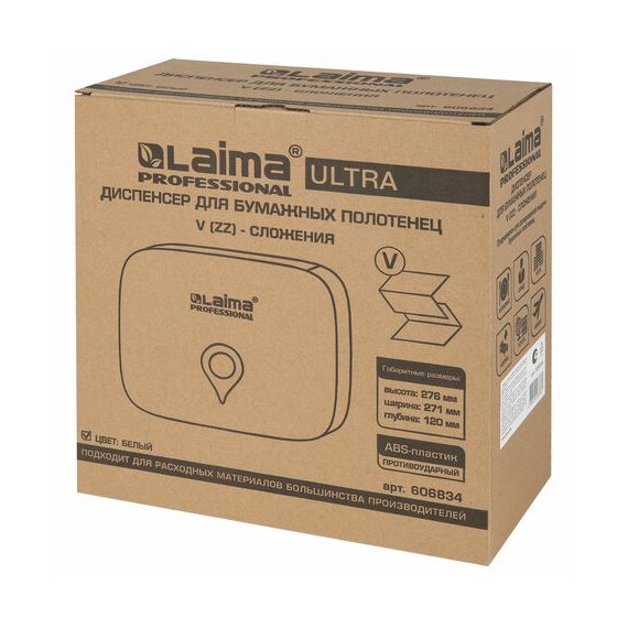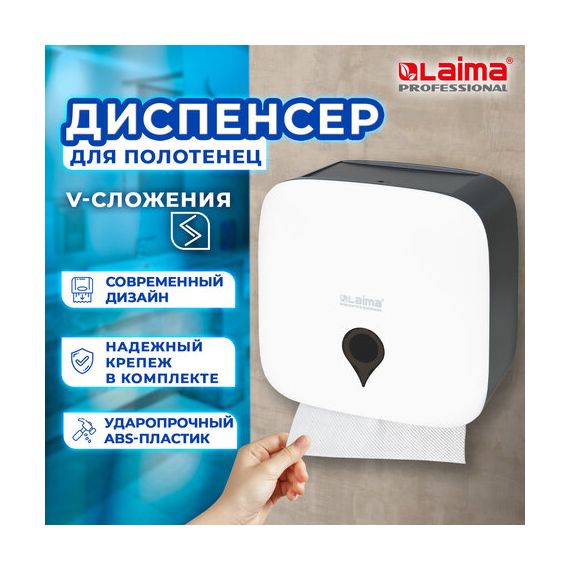 Диспенсер для полотенец ULTRA LAIMA PROFESSIONAL (Система H3), V-сложения, белый, ABS-пластик, 606834