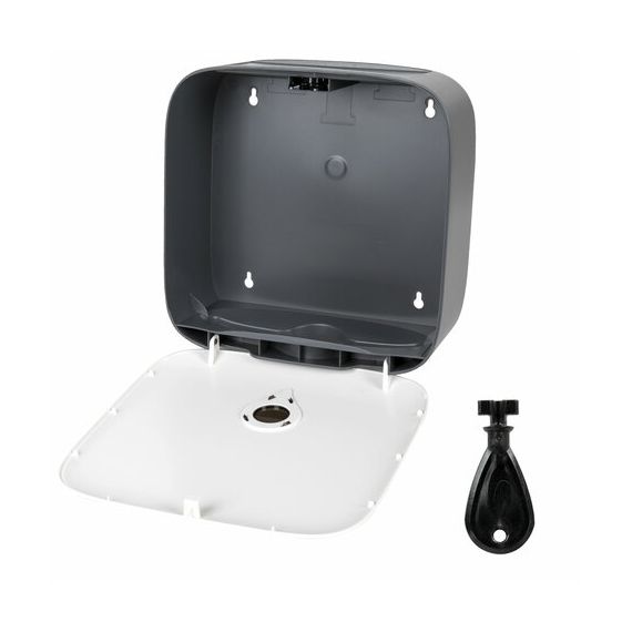 Антивандальный корпус изготовлен из ударопрочного ABS-пластика, позволяет использовать две пачки полотенец V-сложения. Обеспечивает высокий уровень гигиены и комфортную подачу полотенец. Имеется окошко для контроля остатка полотенец. Сочетается с расходными материалами других производителей. Оборудован самозахлопывающимся замком с ключом. В комплект входят крепежные материалы для установки. Размер - 285х279х129 мм.
