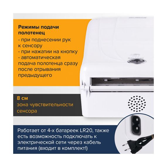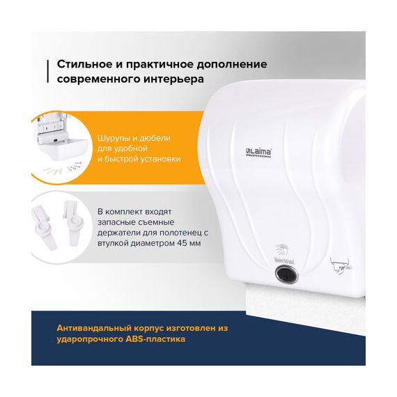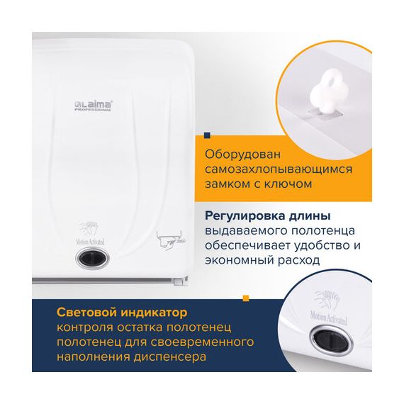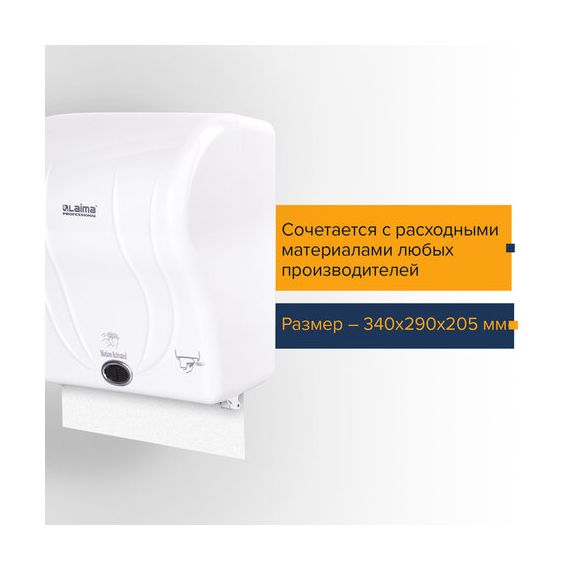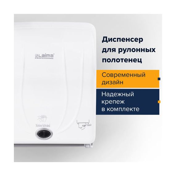 Диспенсер для полотенец в рулонах LAIMA PROFESSIONAL ORIGINAL (Система H1), СЕНСОРНЫЙ, белый, ABS-пластик, 605765