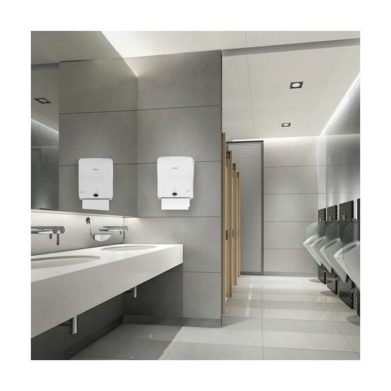 Антивандальный корпус изготовлен из ударопрочного ABS-пластика. Позволяет использовать 1 рулон бумажных полотенец системы H1. Имеет световой индикатор контроля остатка полотенец и возможность регулировки длины выдаваемого полотенца. Питание осуществляется от 4-х батареек LR20, а также возможно подключать к электрической сети через кабель питания (входит в комплект). Сочетается с расходными материалами других производителей. Зона чувствительности сенсора - 8 см. Подача полотенца осуществляется как при поднесении рук к сенсору, так и при нажатии на кнопку. Возможна настройка автоматической подачи полотенца сразу после отрывания предыдущего. Тип закрывания - пластиковый ключ. Самозахлопывающийся замок. В комплект входят запасные съемные держатели для полотенец с втулкой диаметром 45 мм. Размер - 340х290х205 мм. Устройство представлено в современном дизайне. Отвечает всем требованиям гигиены.