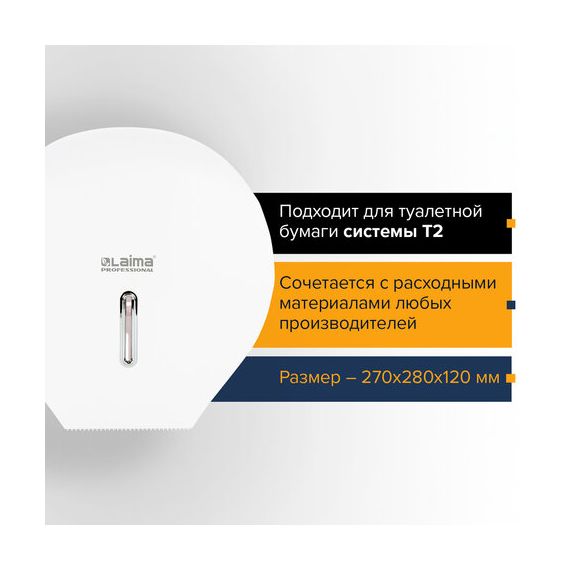 Диспенсер для туалетной бумаги LAIMA PROFESSIONAL BASIC (Система T2), малый, белый, ABS-пластик, 606682