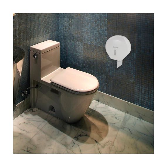 Антивандальный корпус диспенсера изготовлен из ABS-пластика. Предназначен для подачи профессиональной туалетной бумаги в рулонах с намоткой до 200 м. Обеспечивает высокий уровень гигиены и комфортную подачу туалетной бумаги. Имеется окошко для контроля остатка расходных материалов и зубцы для удобного отрывания бумаги. Сочетается с расходными материалами других производителей. Оборудован самозахлопывающимся замком с ключом. В комплект входят крепежные материалы для установки.