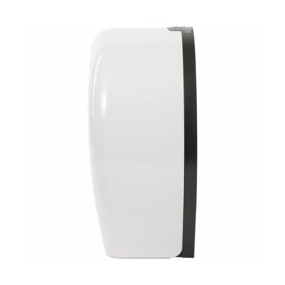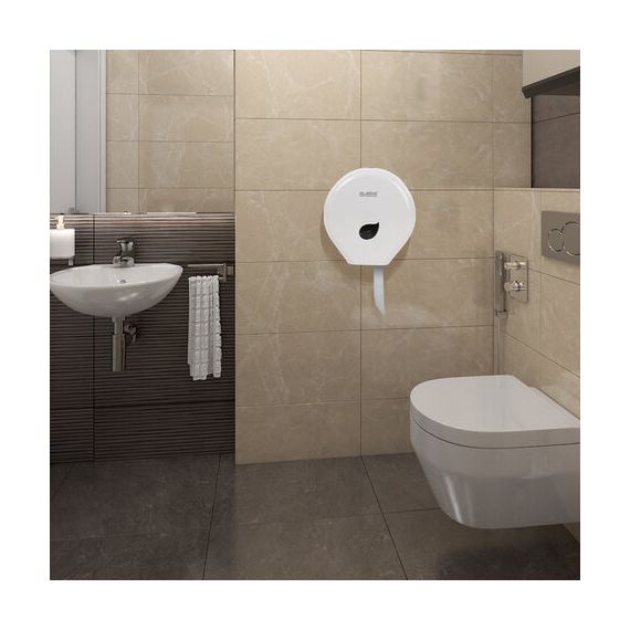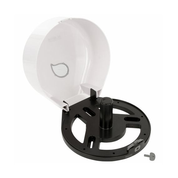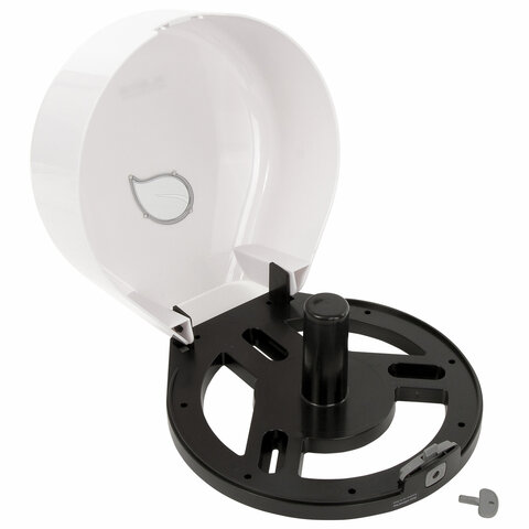 Корпус диспенсера изготовлен из ударопрочного ABS-пластика. Предназначен для подачи профессиональной туалетной бумаги в рулонах с намоткой до 200 м. Обеспечивает высокий уровень гигиены и комфортную подачу туалетной бумаги. Имеется окошко для контроля остатка расходных материалов. Сочетается с расходными материалами других производителей. Оборудован замком с ключом. В комплект входят крепежные материалы для установки. Размер – 272х282х110 мм.