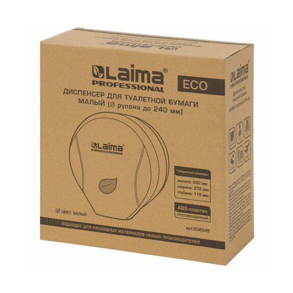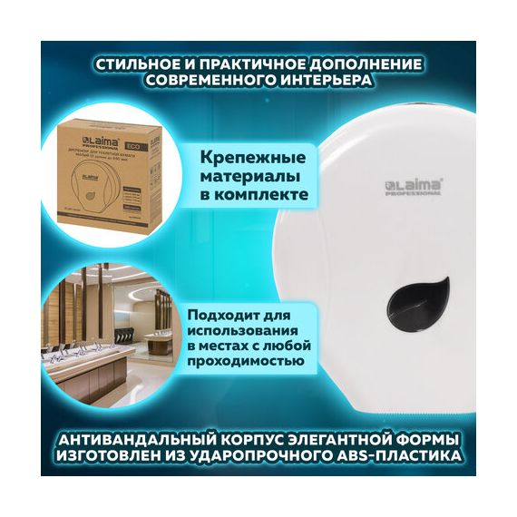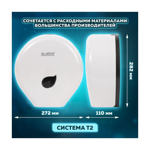 Диспенсер для туалетной бумаги LAIMA PROFESSIONAL ECO (Система T2), малый, белый, ABS-пластик, 606545