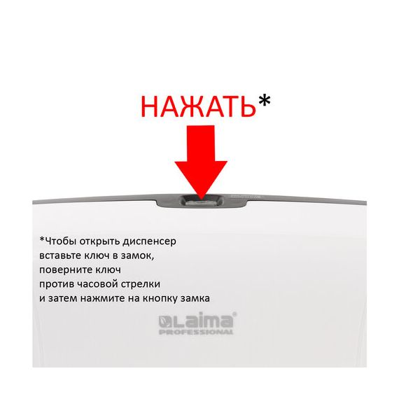 ВНИМАНИЕ! Чтобы открыть диспенсер, вставьте ключ в замок, поверните ключ против часовой стрелки и затем нажмите на кнопку замка.
