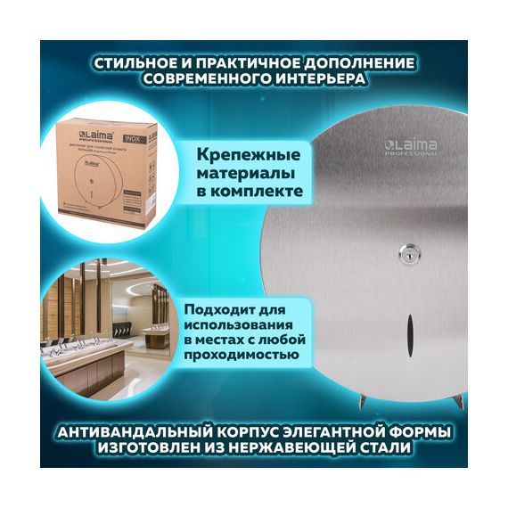 Преимущества диспенсера для туалетной бумаги LAIMA PROFESSIONAL INOX: