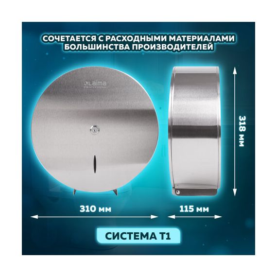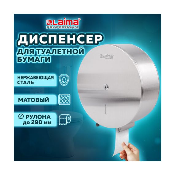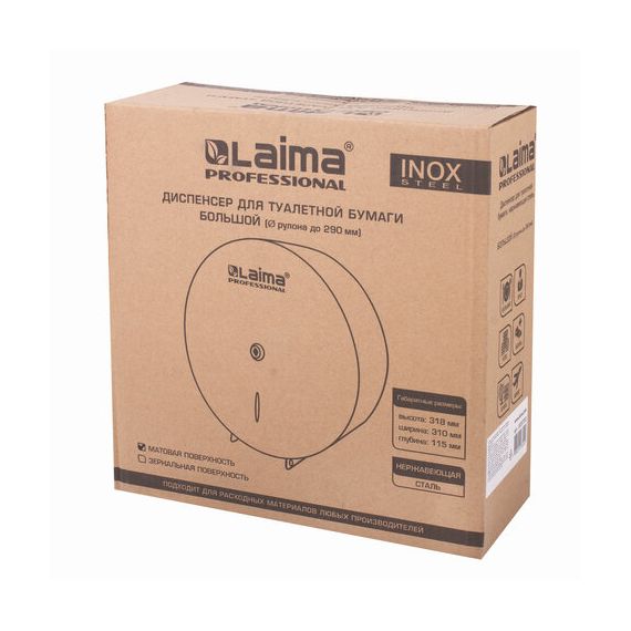 Диспенсер для туалетной бумаги LAIMA PROFESSIONAL INOX, (Система T1) БОЛЬШОЙ, нержавеющая сталь, матовый, 605700