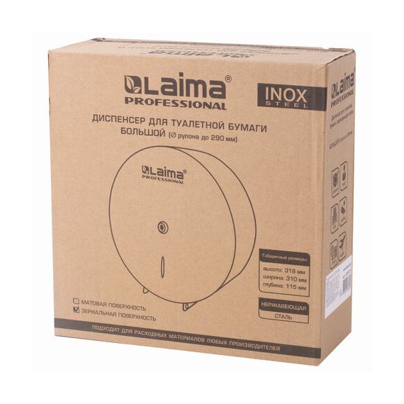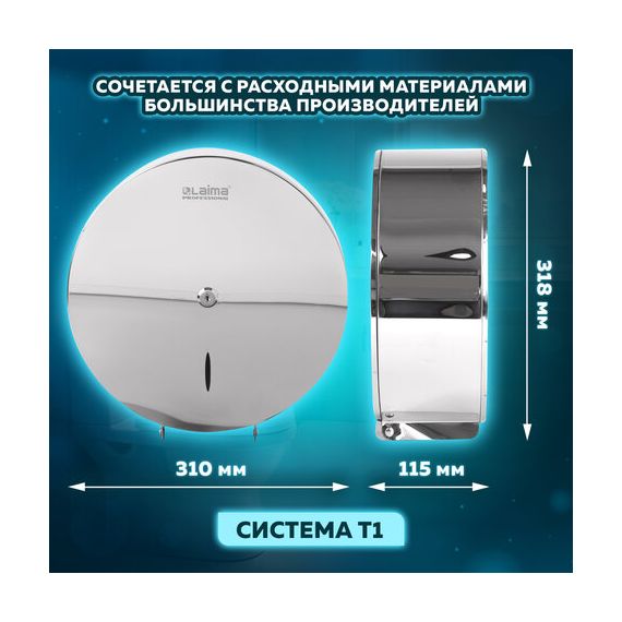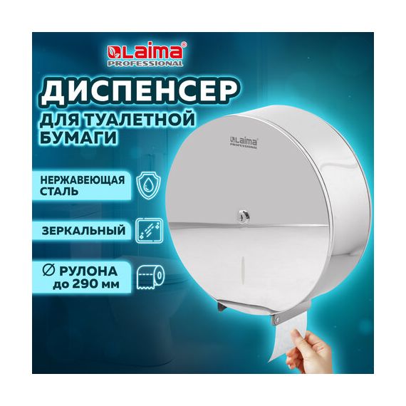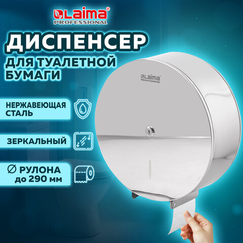 Диспенсер для туалетной бумаги LAIMA PROFESSIONAL INOX, (Система T1) БОЛЬШОЙ, нержавеющая сталь, зеркальный, 605701
