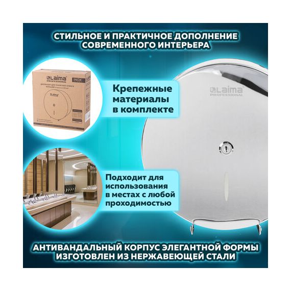 Преимущества диспенсера для туалетной бумаги LAIMA PROFESSIONAL INOX:
