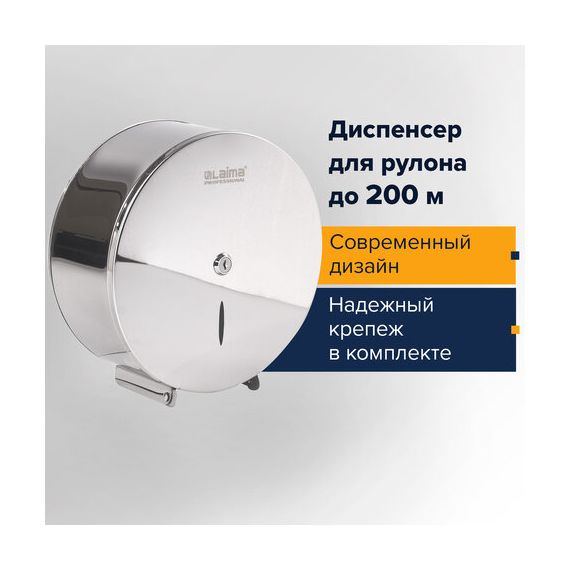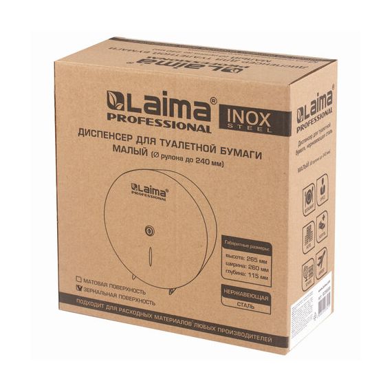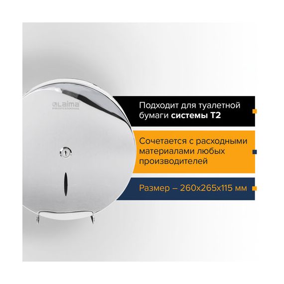 Диспенсер для туалетной бумаги LAIMA PROFESSIONAL INOX, (Система T2) малый, нержавеющая сталь, зеркальный, 605699