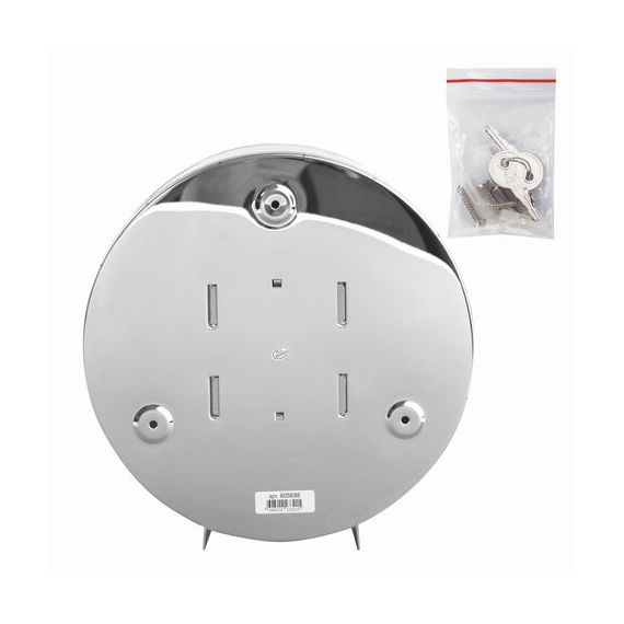 Диспенсер предназначен для подачи профессиональной туалетной бумаги в рулонах с намоткой до 200 м. Имеется окошко для контроля остатка расходных материалов. Сочетается с расходными материалами других производителей. Оборудован замком с ключом. В комплект входят крепежные материалы для установки.