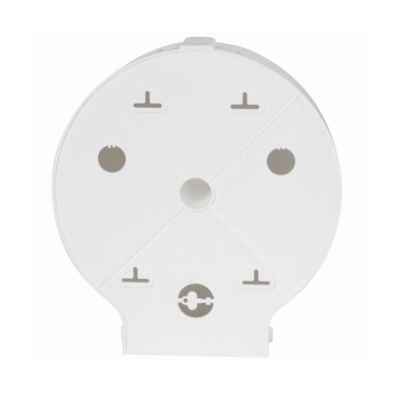 Антивандальный корпус изготовлен из ударопрочного ABS-пластика. Предназначен для подачи профессиональной туалетной бумаги в больших рулонах с намоткой до 525 м. Обеспечивает высокий уровень гигиены и комфортную подачу туалетной бумаги. Имеется окошко для контроля остатка расходных материалов. Сочетается с расходными материалами других производителей. Оборудован самозахлопывающимся замком с ключом. В комплект входят крепежные материалы для установки.