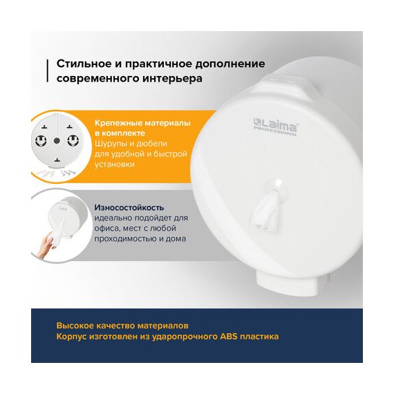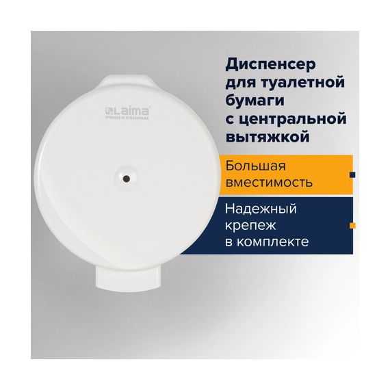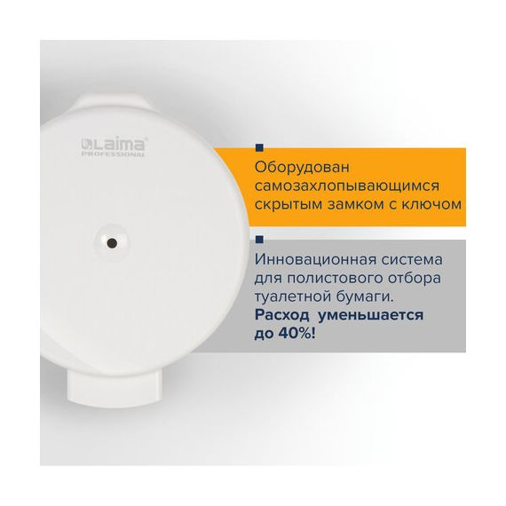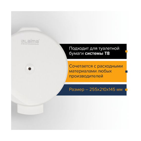 Диспенсер для туалетной бумаги LAIMA PROFESSIONAL ORIGINAL (Система T8), белый, ABS-пластик, 605769
