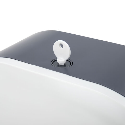 Антивандальный корпус изготовлен из ударопрочного ABS-пластика. Предназначен для подачи профессиональной туалетной бумаги в рулонах с намоткой до 200 м. Обеспечивает высокий уровень гигиены и комфортную подачу туалетной бумаги. Имеется окошко для контроля остатка расходных материалов. Сочетается с расходными материалами других производителей. Оборудован самозахлопывающимся замком с ключом. В комплект входят крепежные материалы для установки. Размер – 255х262х105 мм.