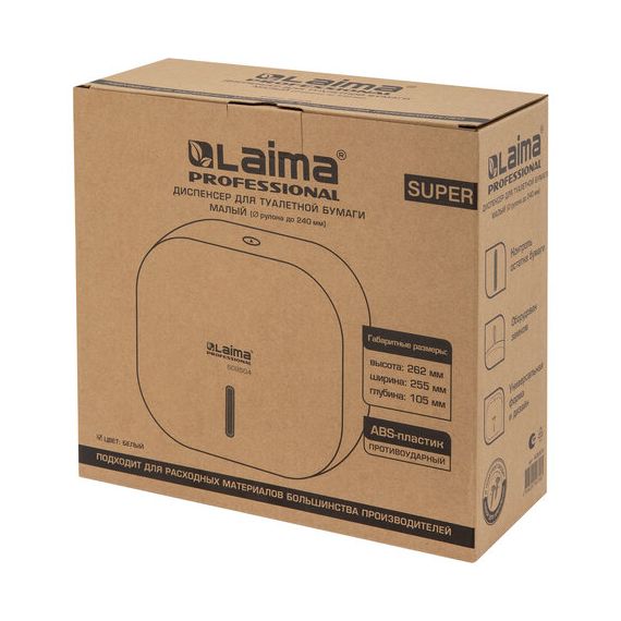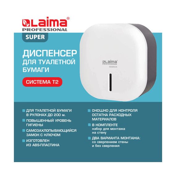 Диспенсер для туалетной бумаги LAIMA PROFESSIONAL SUPER (Система T2), малый, белый, ABS-пластик, 609504