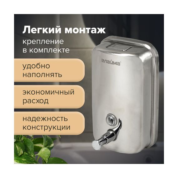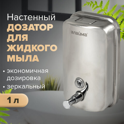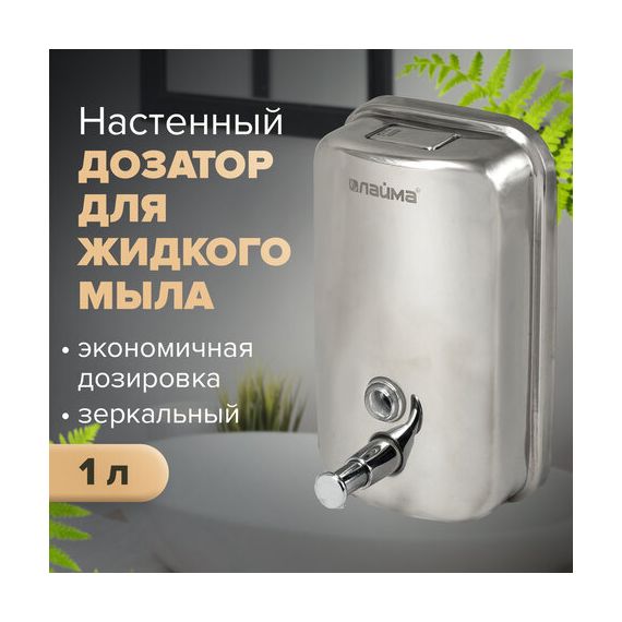 Дозатор для жидкого мыла LAIMA BASIC, 1 л, нержавеющая сталь, зеркальный