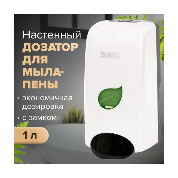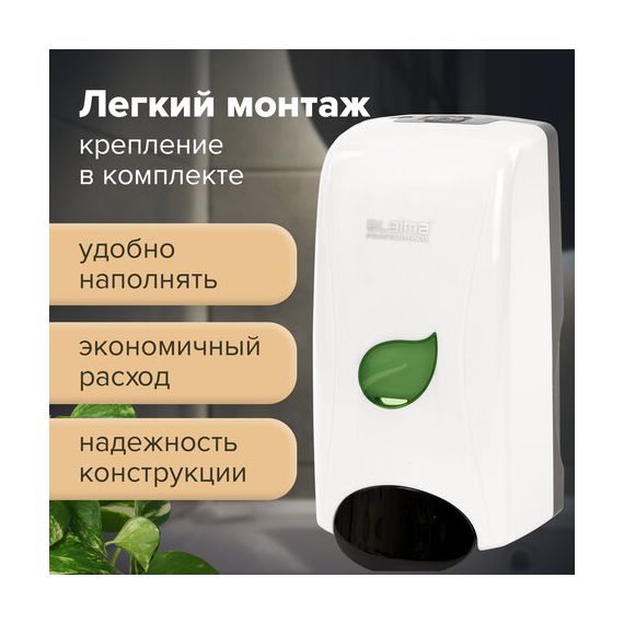 Дозатор для мыла-пены LAIMA PROFESSIONAL ECO, НАЛИВНОЙ, 1 л, белый, ABS-пластик, 606552