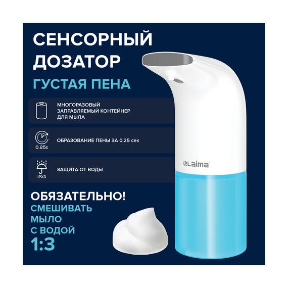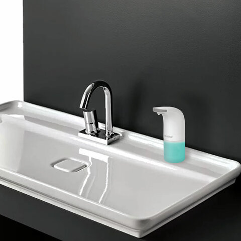 Модель оборудована инфракрасным сенсором, благодаря чему процесс мытья рук становится комфортным и максимально безопасным. Датчик реагирует на движение под носиком устройства, и дозатор сразу же выдаёт мыльную пену. Механизм вспенивания позволяет значительно сократить расход средства. На выходе он превращает мыло-пену в пенообразную смесь, подача которой производится в течение 0,25 секунд после поднесения рук. Дозатор является наливным, то есть не придется постоянно покупать сменные картриджи. Просто открутите прозрачный контейнер и заново заправьте его средством. В комплект входит силиконовая воронка для комфортной заправки диспенсера расходными материалами.