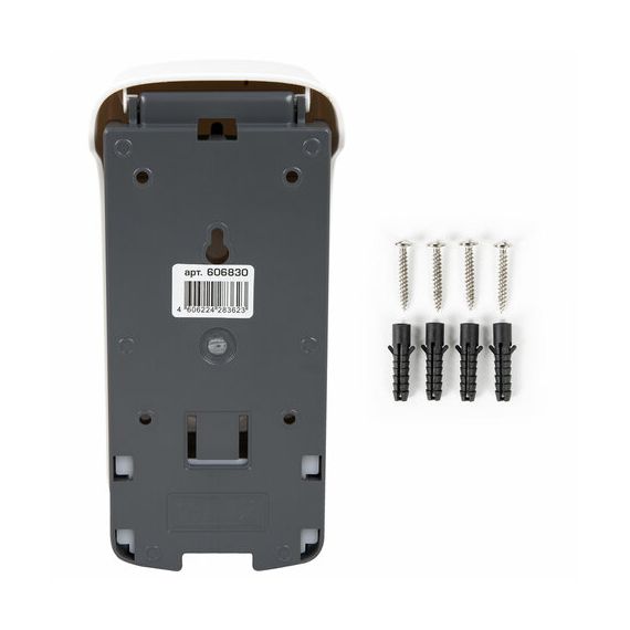 Антивандальный корпус выполнен из ударопрочного ABS-пластика. Объем – 0,5 л. Выдача мыла-пены осуществляется экономичными порциями. Диспенсер сочетается с расходными материалами других производителей. Имеется окно для контроля уровня мыла-пены. В комплект входят крепежные материалы.