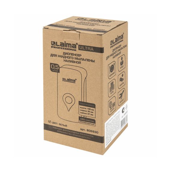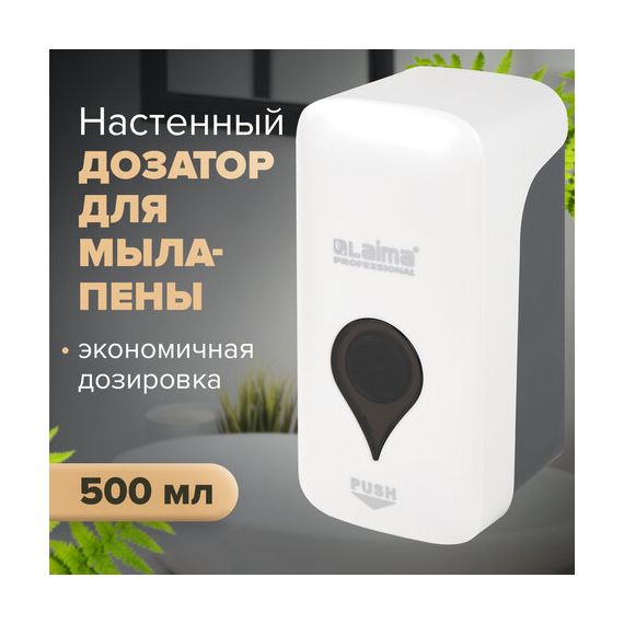 Дозатор для мыла-пены ULTRA LAIMA PROFESSIONAL, НАЛИВНОЙ, 0,5 л, белый, ABS-пластик, 606830