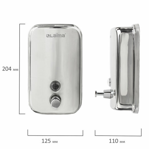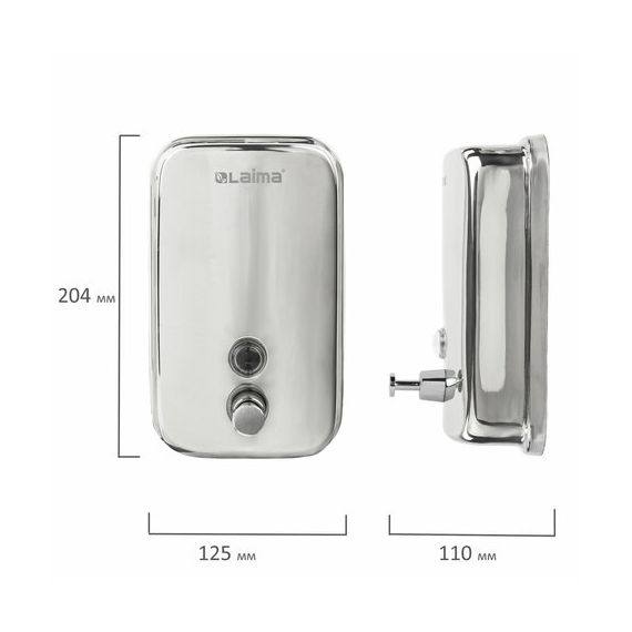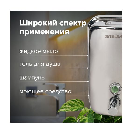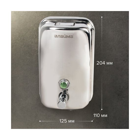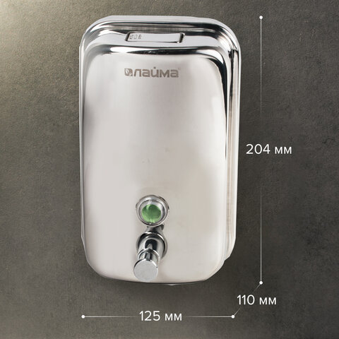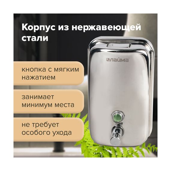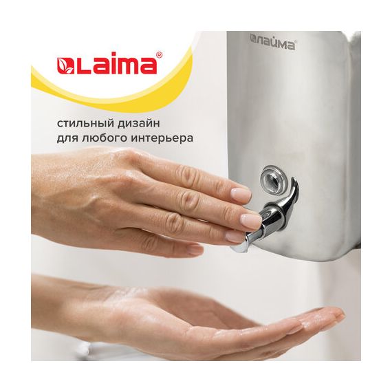 Дозатор для жидкого мыла LAIMA BASIC, 1 л, нержавеющая сталь, зеркальный, 601796
