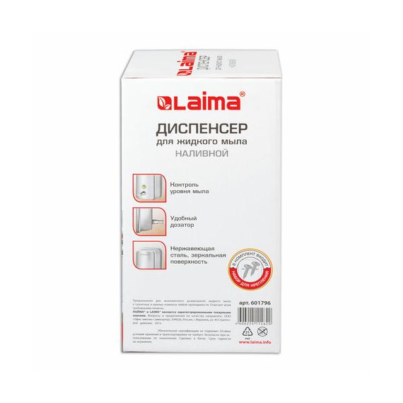 Корпус из нержавеющей стали обеспечивает высокие антивандальные характеристики дозатора. Выдача мыла осуществляется экономичными порциями. Дозатор сочетается с расходными материалами других производителей. Имеется окно для контроля уровня мыла. В комплект входят крепежные материалы.