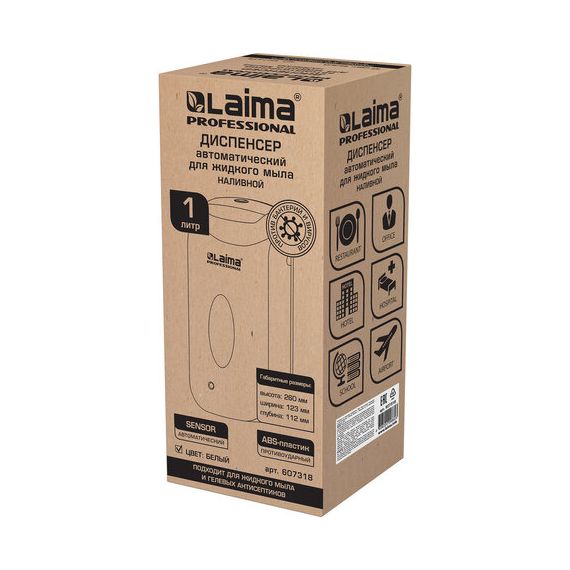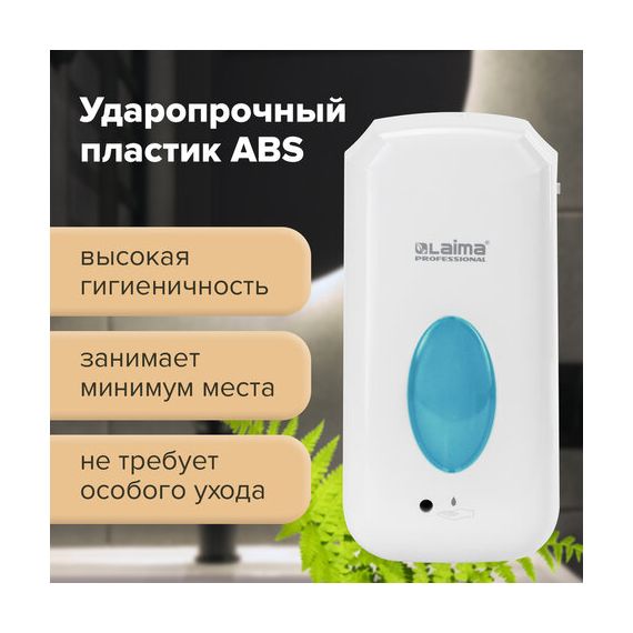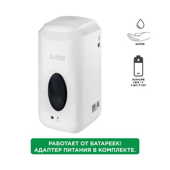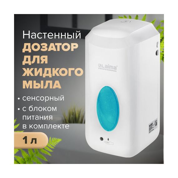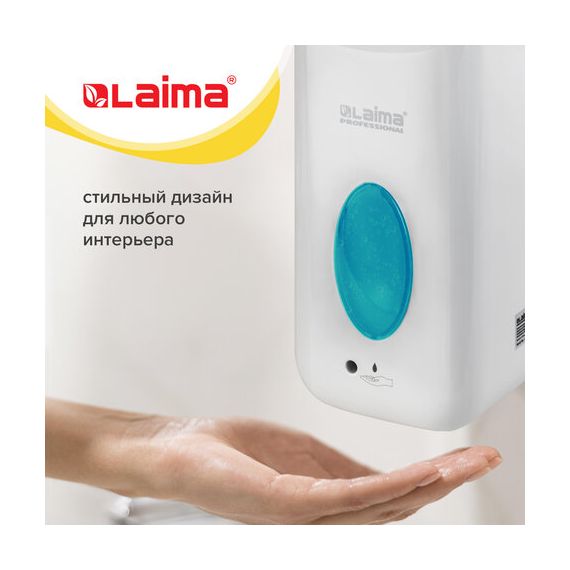 Дозатор для жидкого мыла LAIMA CLASSIC, НАЛИВНОЙ, СЕНСОРНЫЙ, 1 л, с блоком питания, белый, 607318