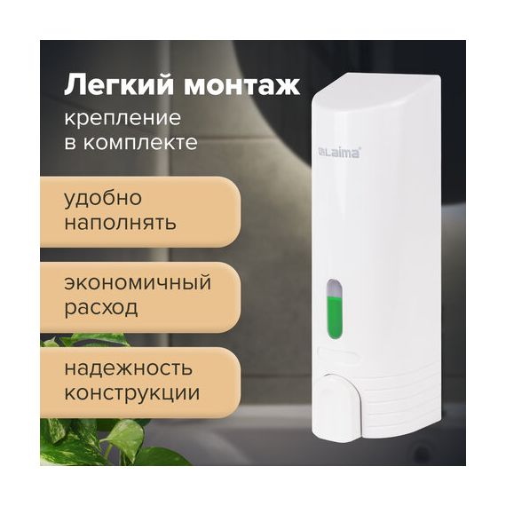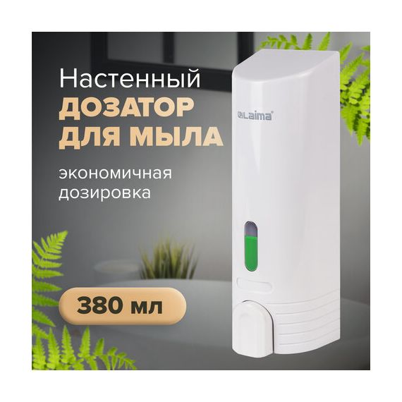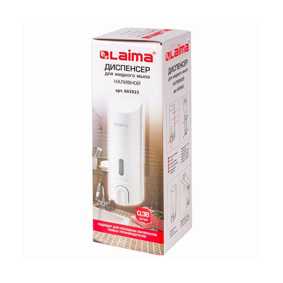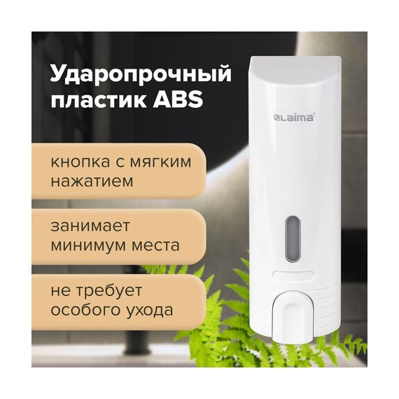 Дозатор для жидкого мыла LAIMA, НАЛИВНОЙ, 0,38 л, белый, ABS-пластик, 603923