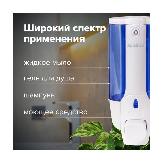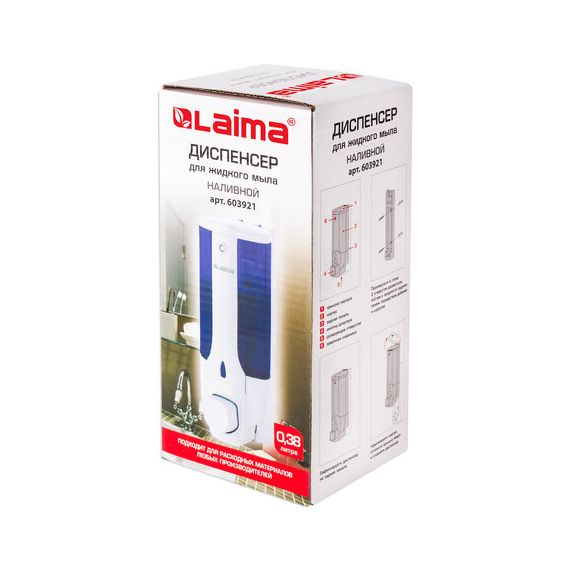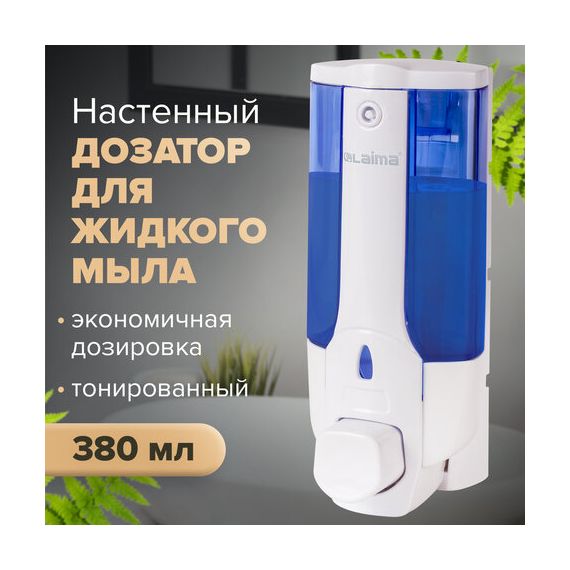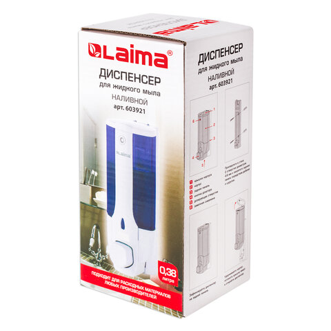 Дозатор для жидкого мыла LAIMA, НАЛИВНОЙ, 0,38 л., белый (тонированный), ABS-пластик, 603921