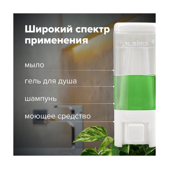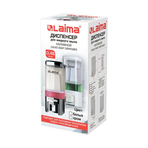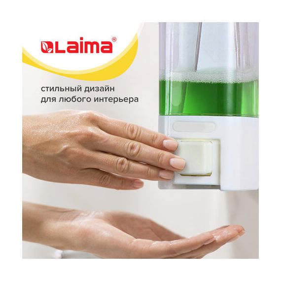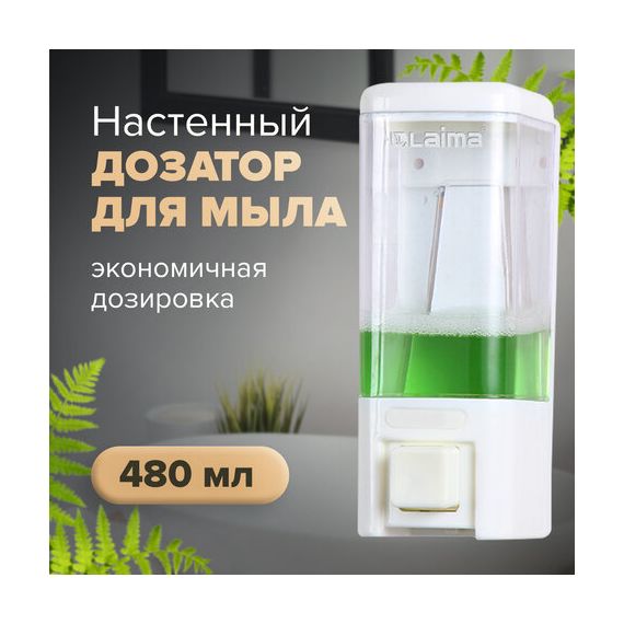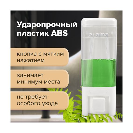 Дозатор для жидкого мыла LAIMA, НАЛИВНОЙ, 0,48 л, белый, ABS пластик, 605052
