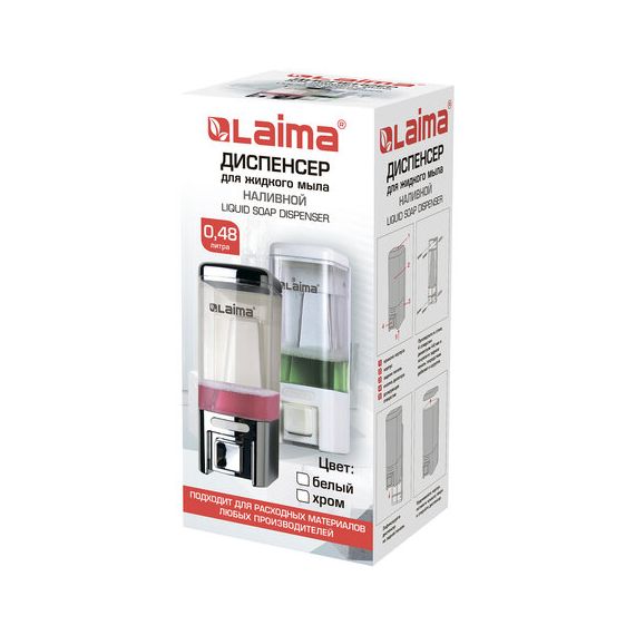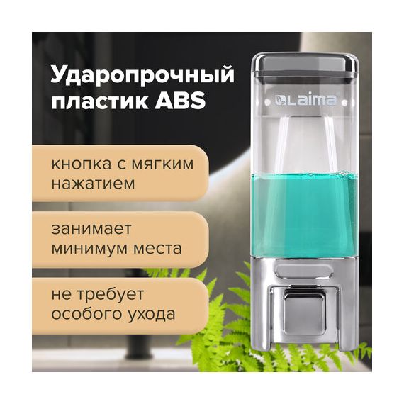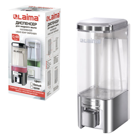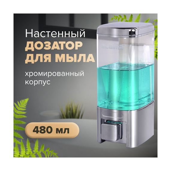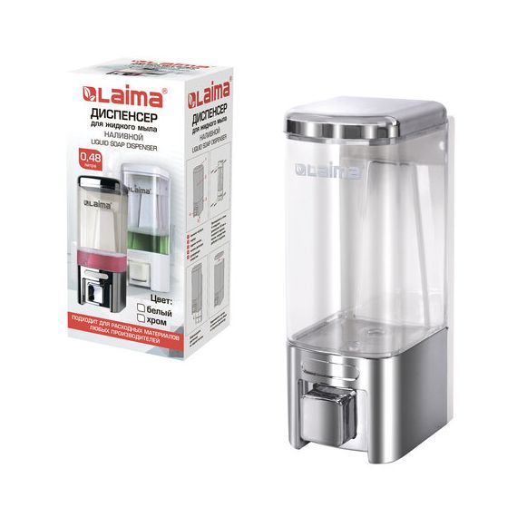 Дозатор для жидкого мыла LAIMA, НАЛИВНОЙ, 0,48 л, хром, ABS-пластик, 605053