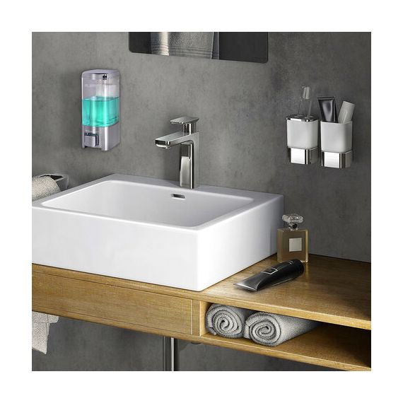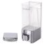 Корпус выполнен из ударопрочного пластика ABS. Выдача мыла осуществляется экономичными порциями. Дозатор сочетается с расходными материалами других производителей. Имеется окно для контроля уровня мыла. В комплект входят крепежные материалы.